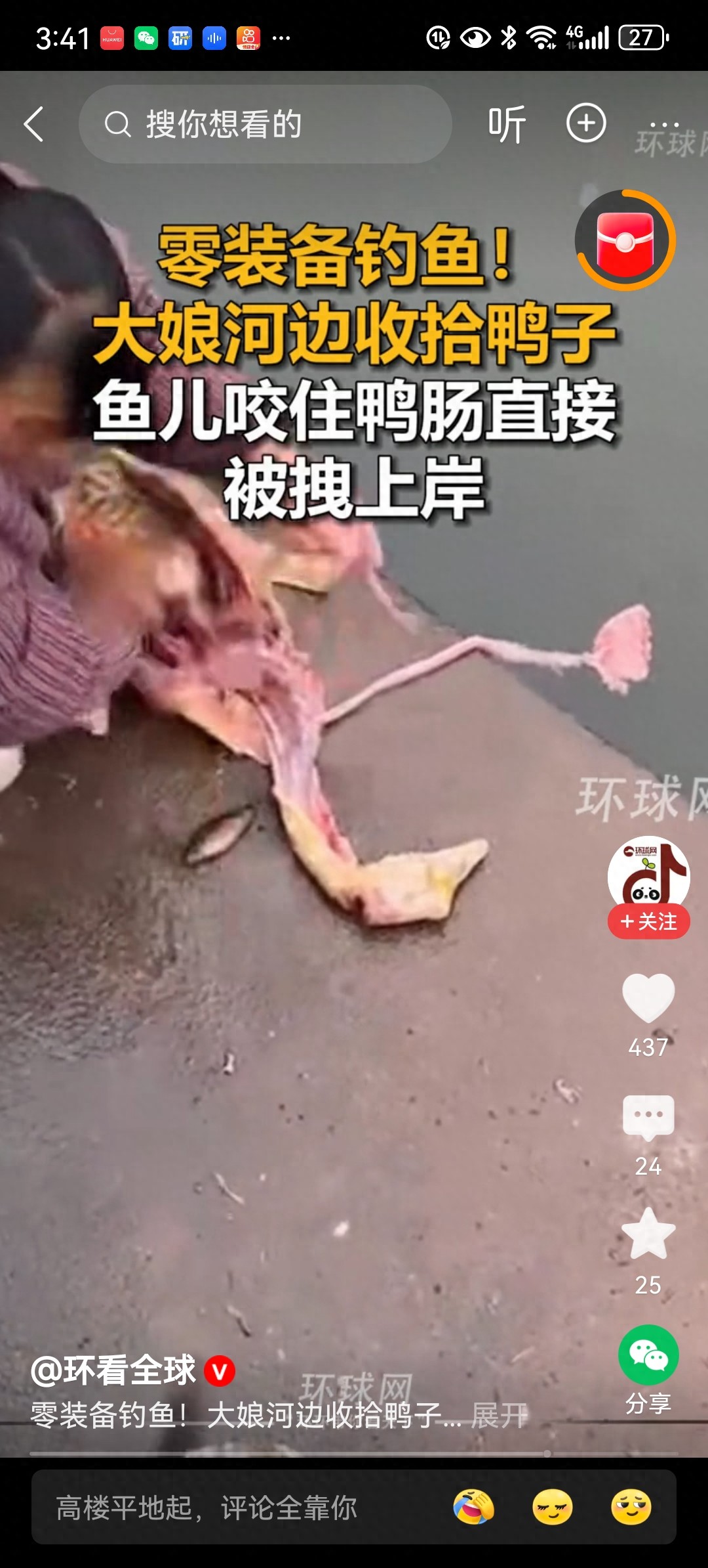 “没鱼竿、没鱼钩、没鱼饵,收拾个鸭子都能钓上鱼来”——2026年3月23日,一段视频在网络上迅速走红,画面里一位大娘蹲在河边的石阶上处理鸭子,正把鸭肠垂入水中漂洗时,一条鱼突然被血腥味吸引死死咬住鸭肠不放,大娘下意识往上一拽,竟直接把这条鱼从水里拖上了岸,鱼嘴上还紧紧挂着那截鸭肠,场面既滑稽又充满生活趣味,网友们纷纷留言说这大概是最“佛系”的钓鱼法了,没带装备也能上鱼,钓鱼佬看了要沉默,大爷们背着几千块的装备蹲一天不如大娘收拾一只鸭子。